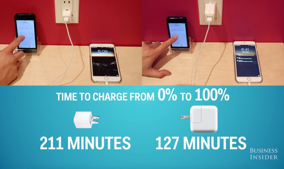 Theo một thử nghiệm của Business Insider, cục sạc iPad có thể sạc chiếc iPhone 6 Plus 40% nhanh hơn so với cục sạc iPhone thông thường.