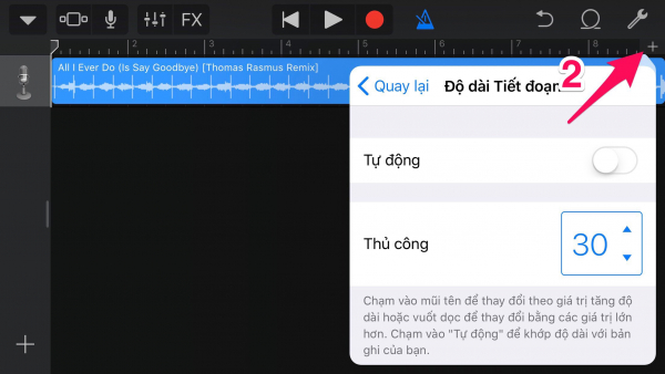 2. Nhấp vào biểu tượng +, chọn Tiết đoạn A, nhập thủ công lên 30.