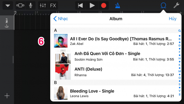 6. List nhạc sẽ hiện ra, để chọn bài hát mình cần, bạn hãy nhấn giữ và kéo bài hát qua trái.