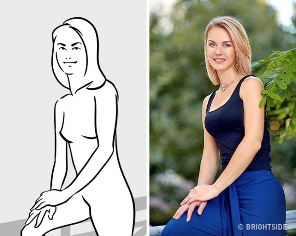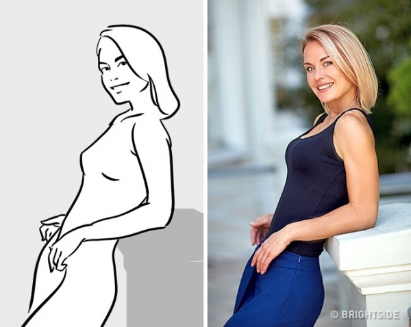 Bạn cũng có thể nghiêng người với phần khuỷu tay chống xuống điểm tựa. Trong trường hợp này, chụp ảnh từ một phía của cơ thể sẽ đẹp hơn. Dáng chụp hình này sẽ tôn lên những đường cong trên cơ thể bạn.