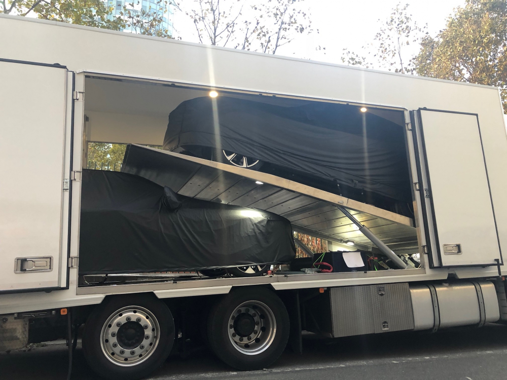 Những tấm phủ xe bắt đầu được tháo ra để sẵn sàng đưa xe vào khu vực triển lãm.
