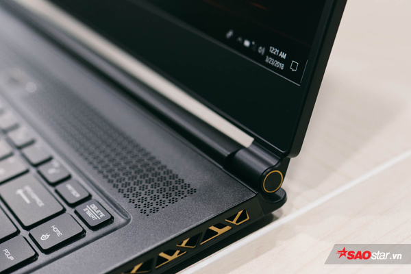 GS65 Stealth Thin có số đo “ba vòng” 357,7 x 247,7 x 17,7mm cùng trọng lượng 1,8 kg. Nhìn chung, so với việc là một chiếc máy tính chơi game, GS65 Stealth Thin có thiết kế khá nhẹ nhàng và tinh tế. Máy sở hữu tông màu đen chủ đạo nhưng được nhấn nhá bằng nhiều điểm nhấn với màu vàng kim. Những chi tiết này khiến thiết bị trở nên đặc biệt, vừa nam tính nhưng không kém phần uyển chuyển.