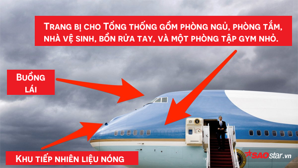 Thực tế Air Force One là một chiếc máy bay Boeing 747-200B được sửa đổi lại cho phù hợp với mục đích sử dụng với diện tích mặt sàn bên trong lên tới trên dưới 371 mét vuông, bao gồm phòng hội thảo, nhà ăn, khu vực riêng cho Tổng thống, văn phòng cho các nhân viên, phòng y tế (trên tất cả các chuyên bay đều có bác sỹ đi cùng), khu vực báo giới, nhà bếp với khả năng phục vụ 100 bữa ăn và phòng radio đa tần số phục vụ giao tiếp trên không và trên không - mặt đất.