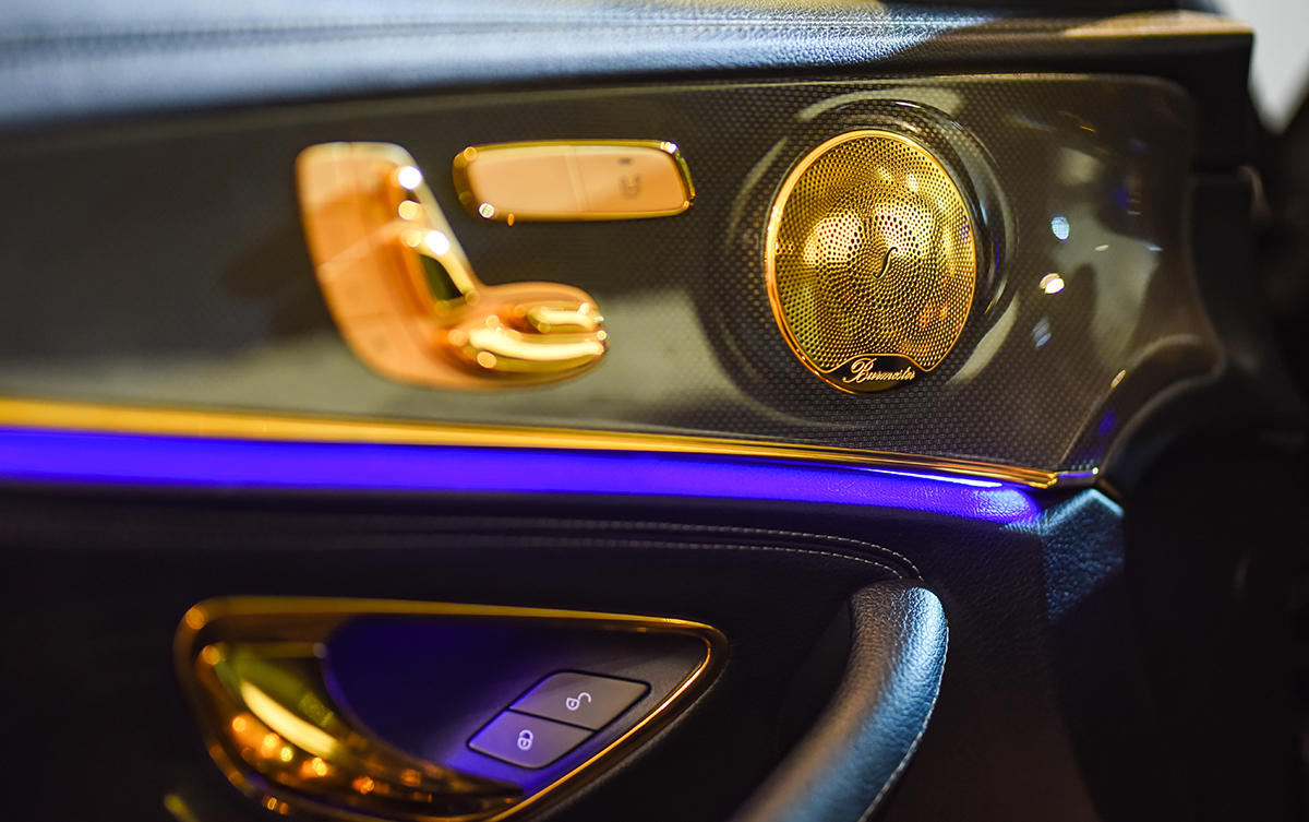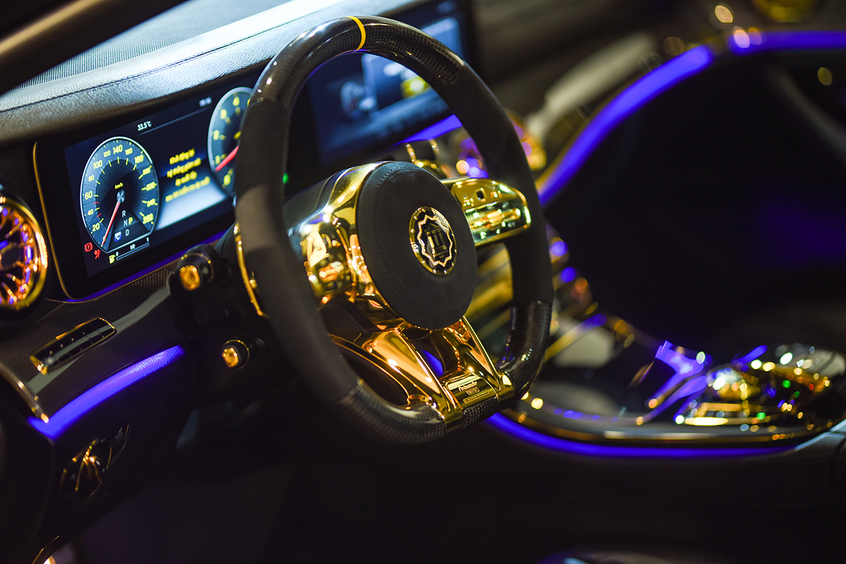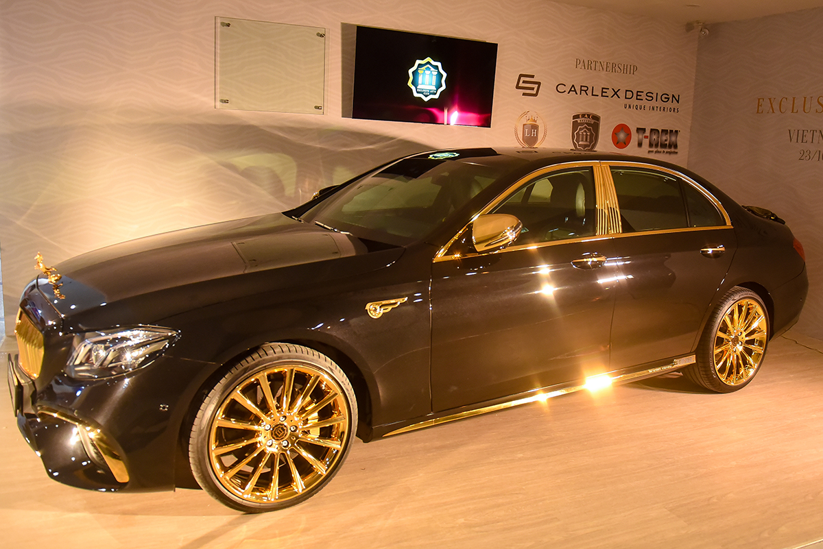 Màu đen bóng cuả ngoại thất cùng những chất liệu cao cấp như vàng, carbon hay kim cương khiến chiếc Mercedes E300 AMG nguyên bản được nâng lên một tầm cao mới về đẳng cấp.