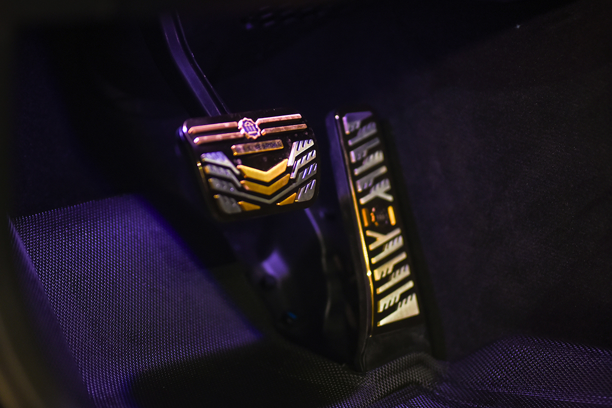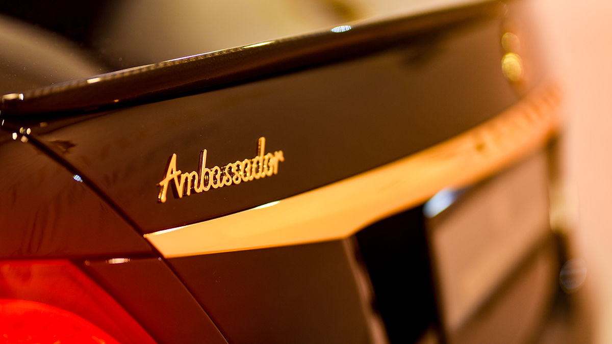 Ngoài ra, cái tên “Ambassador” & phiên bản model “EX300” cũng được gia công bằng cơ khí chính xác & mạ vàng hoàn thiện bắt mắt không kém. Nổi bật hai bên hông xe với nẹp kim loại chạy dọc toàn bộ gầm xe được gia công chính xác và mạ vàng 24K, nổi bật với dòng chữ “EAC - Bespoke Edition” - phiên bản riêng cho cá nhân.