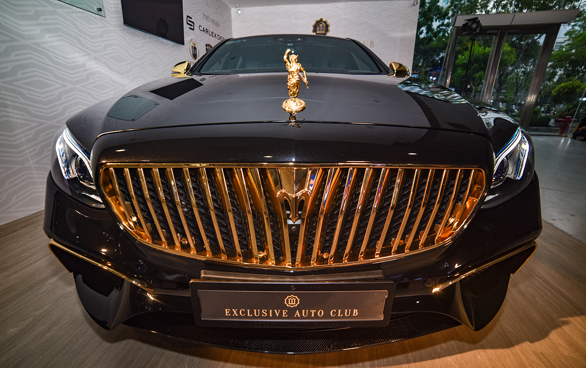 Trên chiếc Ambassador EX300, mâm tiêu chuẩn 19’’ AMG được thay thế bằng bộ mâm AMG 20’’ chính hãng từ Đức. Bên cạnh đó, mâm xe đều được chế tác mạ vàng 24K sang trọng và toát lên vẻ xa xỉ. Phần cốp xe cũng được mạ vàng 24K cùng dòng chữ EXCLUSIVE được gia công tinh tế cùng vẻ ngoài đen bóng. Logo chính giữa xe được thiết kế và gia công bằng cơ khí chính xác với logo EAC, long lanh bởi hiệu ứng trong suốt, bóng bẩy như pha lê.