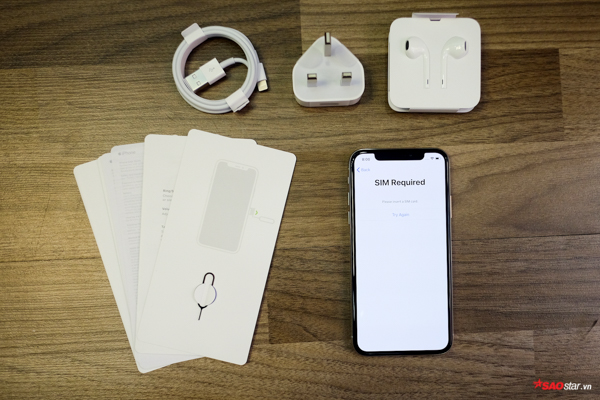 Tất tần tật toàn bộ phụ kiện đi theo máy, gồm có: sách hướng dẫn, cốc và cáp sạc, tai nghe, sách hướng dẫn và khe chọc SIM.