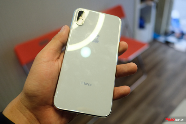 Chiếc iPhone X đầu tiên xuất hiện tại Việt Nam là phiên bản màu trắng với bộ nhớ trong 256 GB. Máy khá nổi bật với thiết kế khung viền cấu thành từ thép không gỉ và hai mặt kính. Với chất liệu kính, iPhone có thể dễ dàng phục vụ người dùng với tính năng sạc không dây hơn. Tuy nhiên, điểm trừ của chất liệu này nằm ở việc máy khá bám dính mồ hôi, dấu vân tay, nhất là đối với người dùng ở một đất nước nhiệt đới như Việt Nam và vào mùa hè, vấn đề này cũng khá đáng lưu tâm. Tuy nhiên, nhìn chung thì iPhone X cầm khá đầm tay và thú vị.