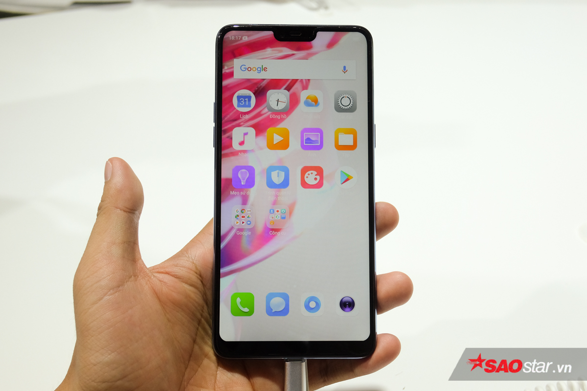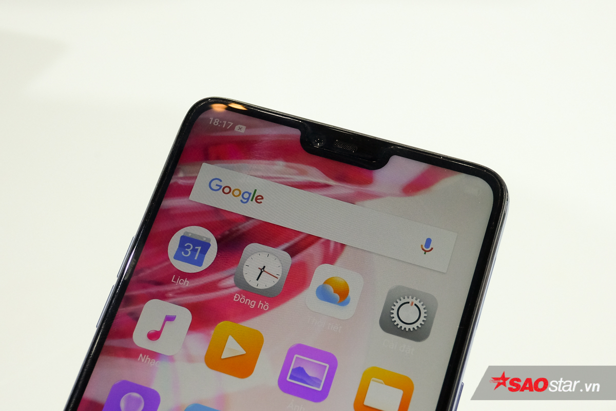 OPPO F7 có viền màn hình mỏng. Theo quan sát, “tai thỏ” trên chiếc điện thoại này thậm chí có phần nhỏ gọn hơn cả trên iPhone X.