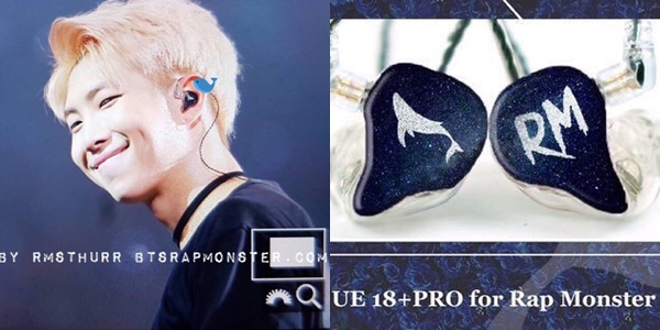 RM có một chiếc UE18+ Pro với thiết kế khá đơn giản cùng sự kết hợp giữa vào tím và màu trắng. Trên mỗi bên tai nghe có in chữ RM.