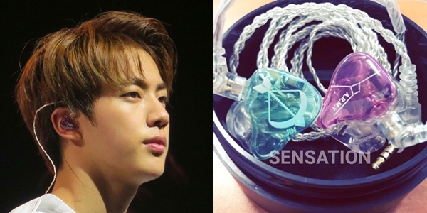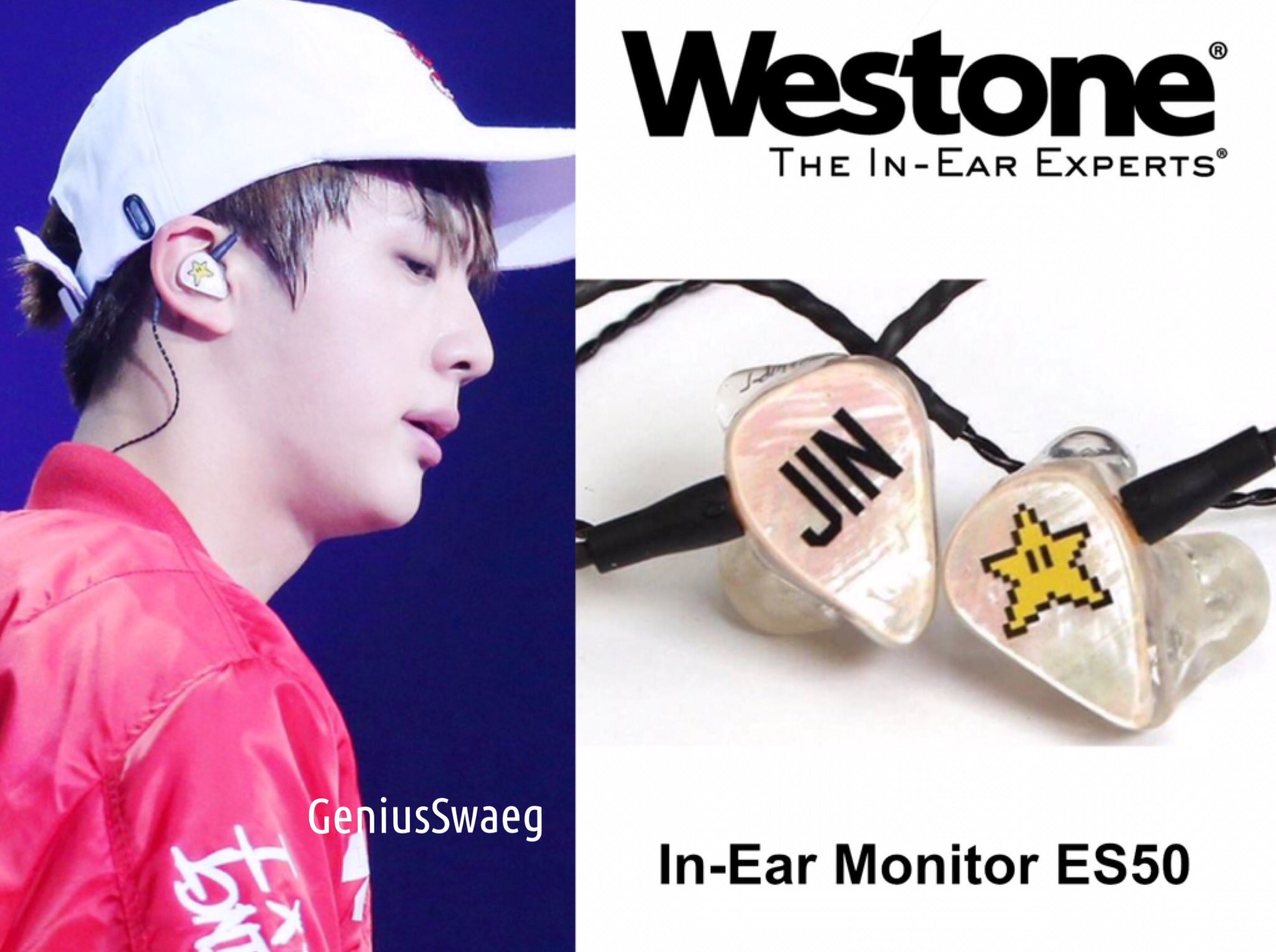 Chiếc tai nghe UE18+ Pro của Jin là do fansite tặng Sensation tặng. Một bên tai có in hình cung tên cùng tên Jin và bên còn lại in chữ ARMY (tên cộng đồng người hâm mộ BTS).