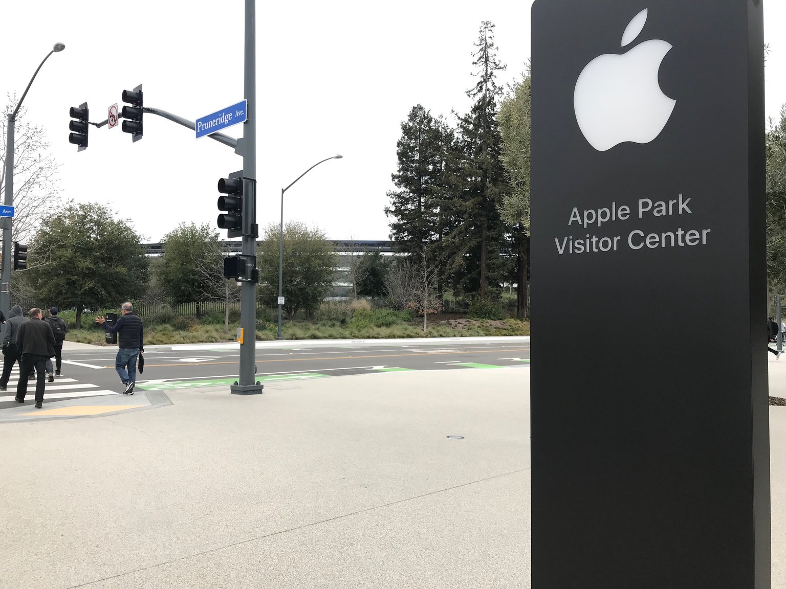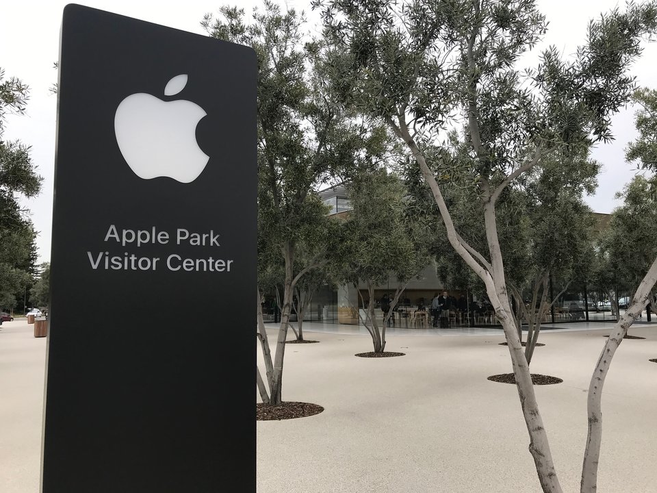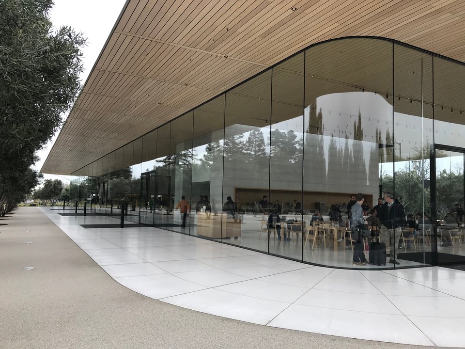 Đứng ở trước Visitor Center, bạn hoàn toàn có thể nhìn thấy toà nhà hình tàu vũ trụ của Apple ngay bên kia đường.