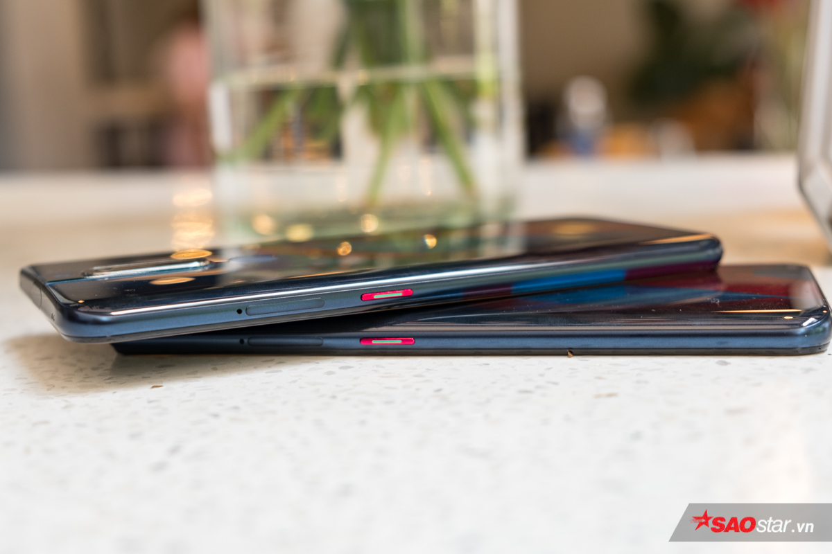 Nút bấm vật lý màu đỏ nổi bật bên sườn máy.
