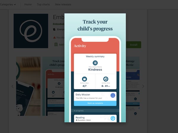 Gói dịch vụ này bao gồm các hoạt động thử thách, lưu trữ dữ liệu trên mây và một ứng dụng kèm theo cho bố mẹ. (Ảnh: Embodied)