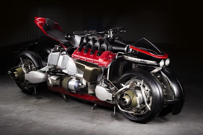 Ludovic Lazareth's LVM 496 là một chiếc xe máy bay có thiết kế cực kì bóng bẩy và hiện đại cùng sự kết hợp của màu đen và màu đỏ. Ở thời điểm hiện tại, chỉ có đúng năm chiếc xe như thế này đã xuất hưởng.