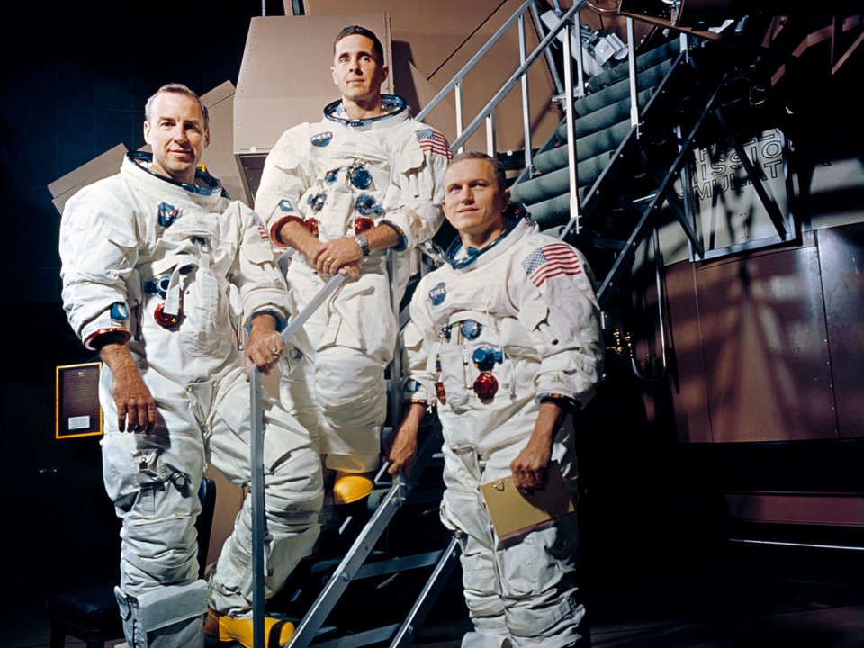 James A. Lovell Jr., William A. Anders, và Frank Borman (từ trái qua phải) là ba phi hành gia đầu tiên được đưa lên quỹ đạo Mặt trăng.