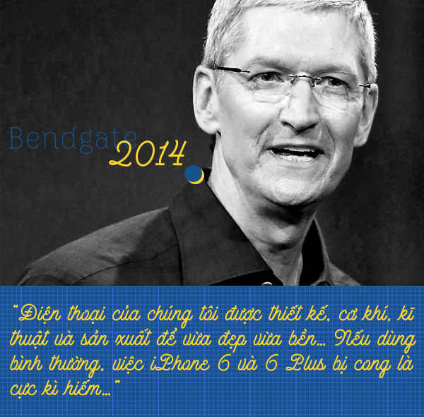 Năm 2014 cũng là một mốc quan trọng trong hành trình smartphone của Apple bởi sau nhiều năm nói không với màn hình kích thước lớn, Apple ra mắt iPhone 6 Plus với kích thước màn hình 5,5 inch. Ít lâu sau khi lên kệ, người dùng bắt đầu tố chiếc điện thoại của Apple quá dễ bị cong, vênh ngay cả trong điều kiện sử dụng bình thường.