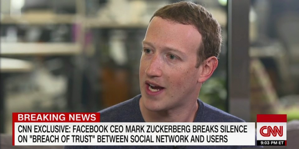 Sau khi “phá vỡ sự im lặng” về bê bối 50 triệu thông tin tài khoản Facebook bị một công ty Anh có tên Cambridge Analytica lạm dụng trên trang cá nhân, Mark Zuckerberg, người đừng đầu mạng xã hội lớn nhất hành tinh cũng chính thức có một cuộc phỏng vấn với đài CNN. “Tôi thực sự xin lỗi về những gì đã xảy ra,” Mark Zuckerberg phát biểu.