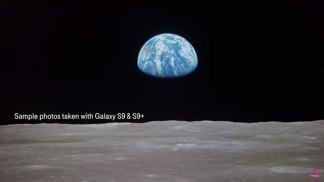 Trong đoạn video bóc hộp S9 dưới đây, T-Mobile còn chụp lại những hình ảnh từ mặt trăng với camera sau của thiết bị.
