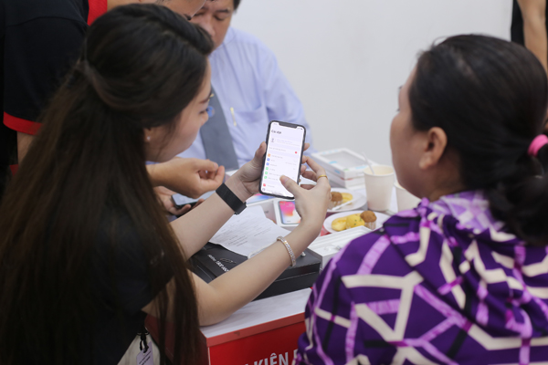 Nhiều người đến điểm mở bán hôm nay để trải nghiệm sản phẩm trước khi quyết định mua máy.