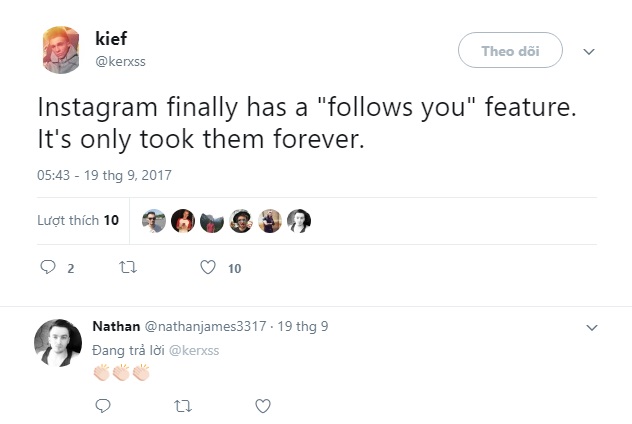 “Ủa từ bao giờ Instagram có chức năng hiển thị người follow tôi vậy. Tạ ơn Chúa!”