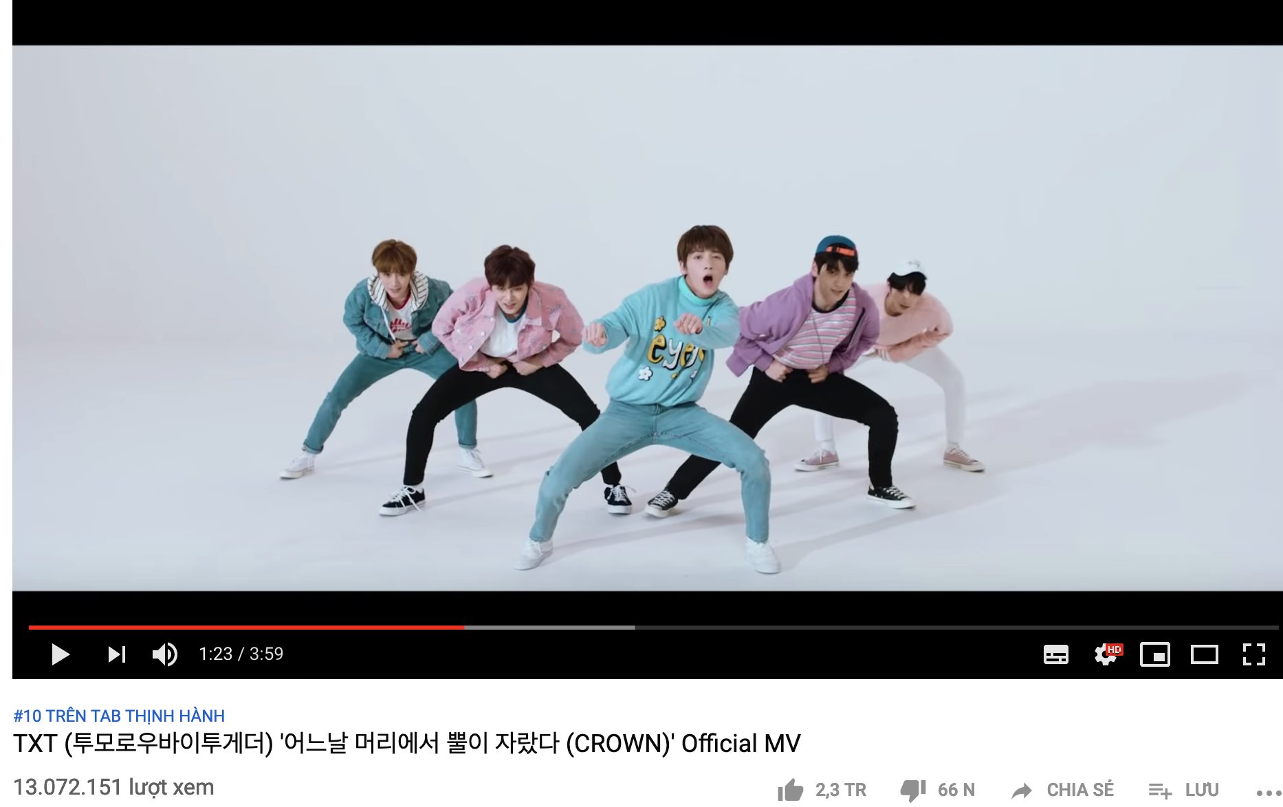 Tính đến thời điểm hiện tại, MV Crown của TXT đã đạt hơn 13 triệu lượt xem.