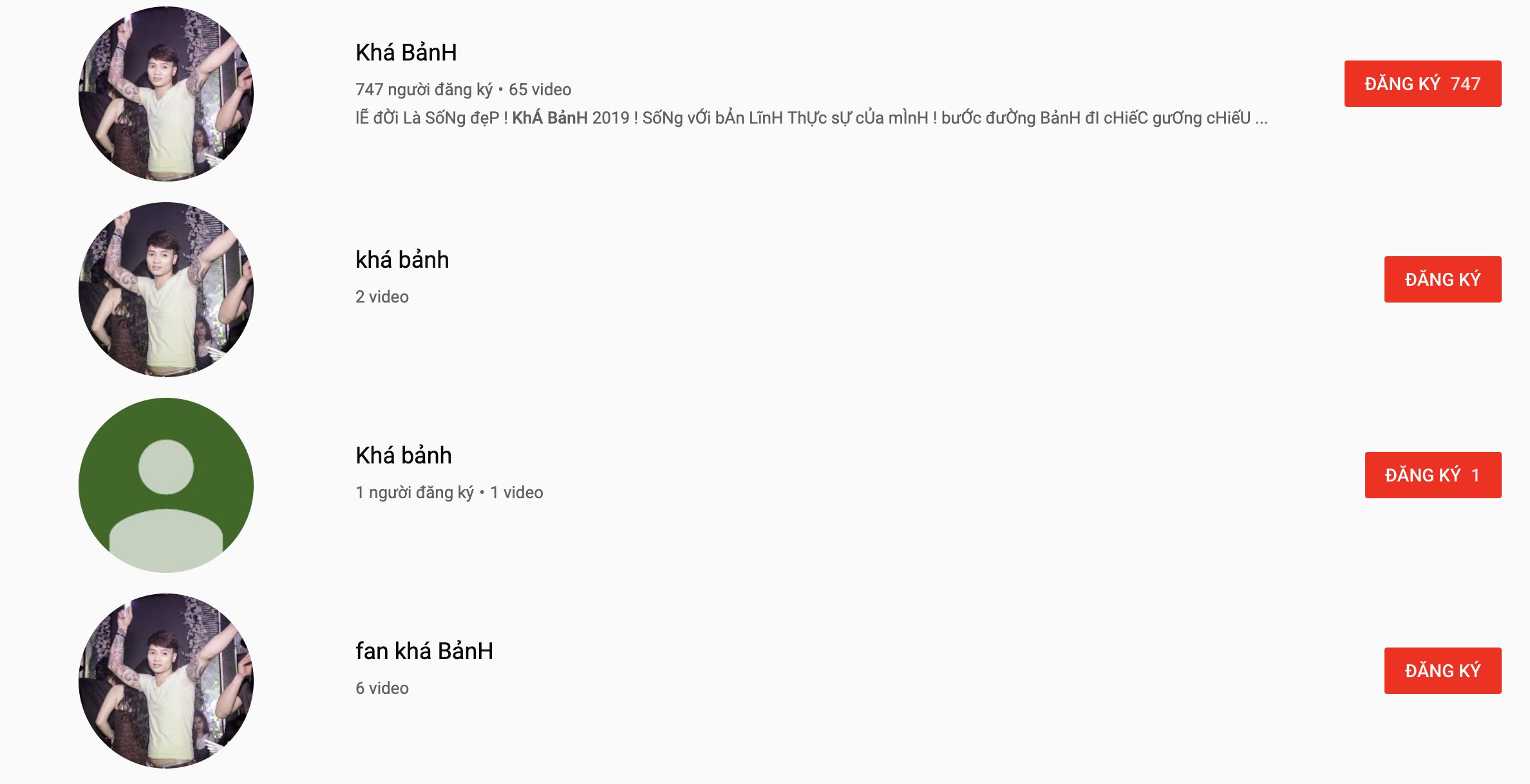 Hàng trăm kênh giả mạo Khá Bảnh đang hoạt động rầm rộ trên YouTube.