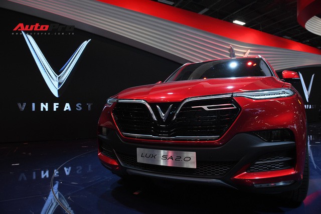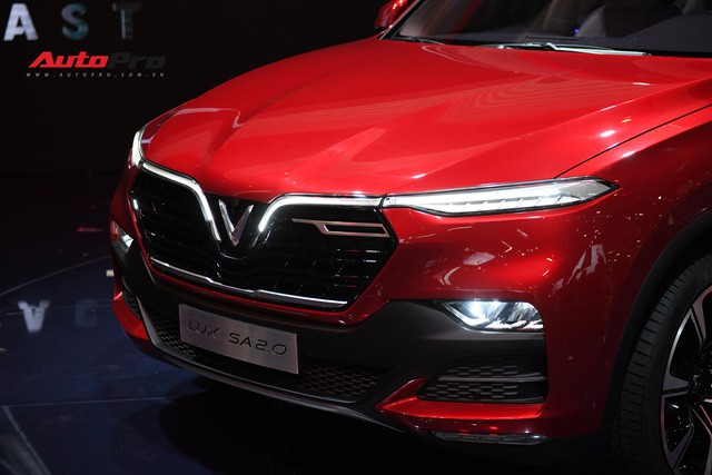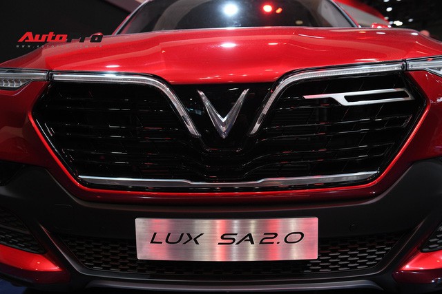 Cũng giống phiên bản sedan Lux A2.0, SUV Lux SA2.0 cũng mang logo với trung tâm là chữ “V” màu bạc được thiết kế độc đáo và táo bạo. (Ảnh: AutoPro)