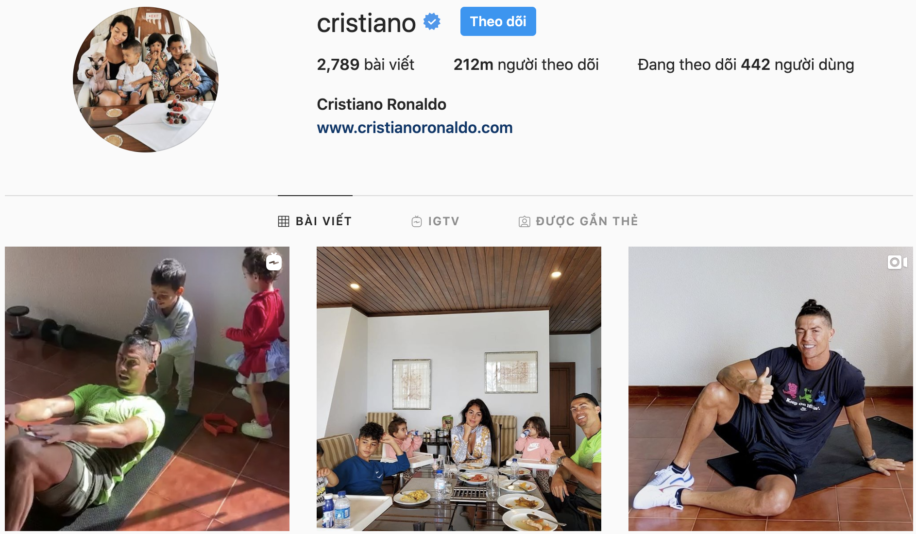 Cristiano Ronaldo hiện đang có hơn 212 triệu người theo dõi trên Instagram và cũng là người được theo dõi nhiều nhất trên mạng xã hội này.