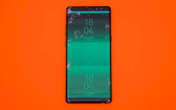 Samsung Galaxy Note8 tương tự iPhone 8 cũng dừng bước ở thử thách thả rơi úp mặt xuống bê tông từ độ cao 1,8 mét. (Điểm: 4,3/10)