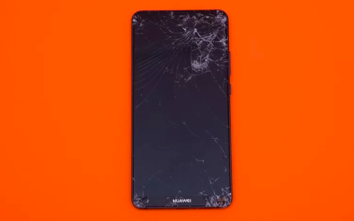 Cú thả rơi úp mặt chiếc Huawei Mate 10 xuống nền bê tông thậm chí để lại nhiều hư hại đến mức lộ cả phần linh kiện điện tử bên trong. (Điểm: 4,3/10).