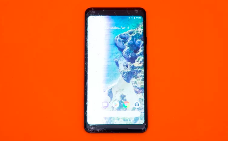 Một nửa màn hình chiếc Google Pixel 2 XL bị trắng xoá sau cú thả rơi úp mặt xuống bê tông ở độ cao 1,8 mét. Có vẻ như đây đúng là thử thách “tử thần” với hầu hết điện thoại trong danh sách này. (Điểm: 4,3/10)