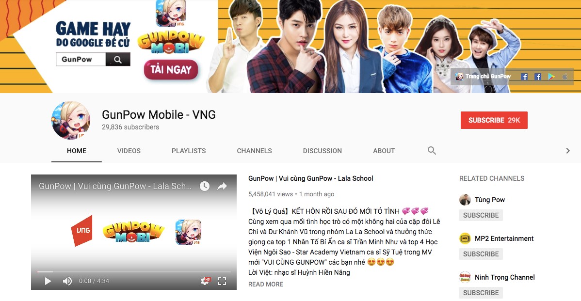 Giao diện kênh YouTube của GunPow rất trau chuốt và liên tục được làm mới, đáp ứng được nhu cầu của User.