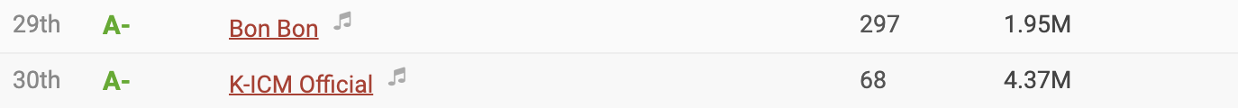Cũng chính vì điều này, kênh YouTube K-ICM Official đã chính thức rời top 20 kênh YouTube được hàng đầu tại Việt Nam vào ngày 3/1 vừa qua. Nếu lượng người theo dõi kênh tiếp tục giảm, kênh YouTube của K-ICM có thể tiếp tục rời thứ hạng hiện tại là 30, theo thống kê của Social Blade.
