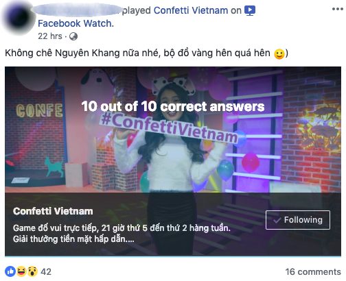 Trong vài số phát sóng trở lại đây, Confetti Vietnam thực sự thu hút được rất nhiều sự chú ý của người dùng Facebook Việt. Theo thông tin cập nhật, Confetti Vietnam ở thời điểm hiện tại có thể được xem là phiên bản Confetti thành công nhất tại Châu Á. Có những thời điểm, gameshow đố vui trực tuyến nhận giải thưởng tiền mặt này thu hút được tới 160.000 người chơi cùng lúc tại Việt Nam. Dù vậy, mới đây, người chơi Confetti Vietnam đã không khỏi cảm thấy tiếc nuối khi MC duyên dáng Sam chia tay chương trình. Thế nhưng, Confetti Vietnam có vẻ như đã bắt thóp được tâm lý của người chơi khi vẫn chia sẻ hàng loạt hình ảnh của cô nàng này khi mặc dù đã không còn dẫn chương trình này nữa khiến người chơi mừng hụt rằng Sam sắp trở lại.