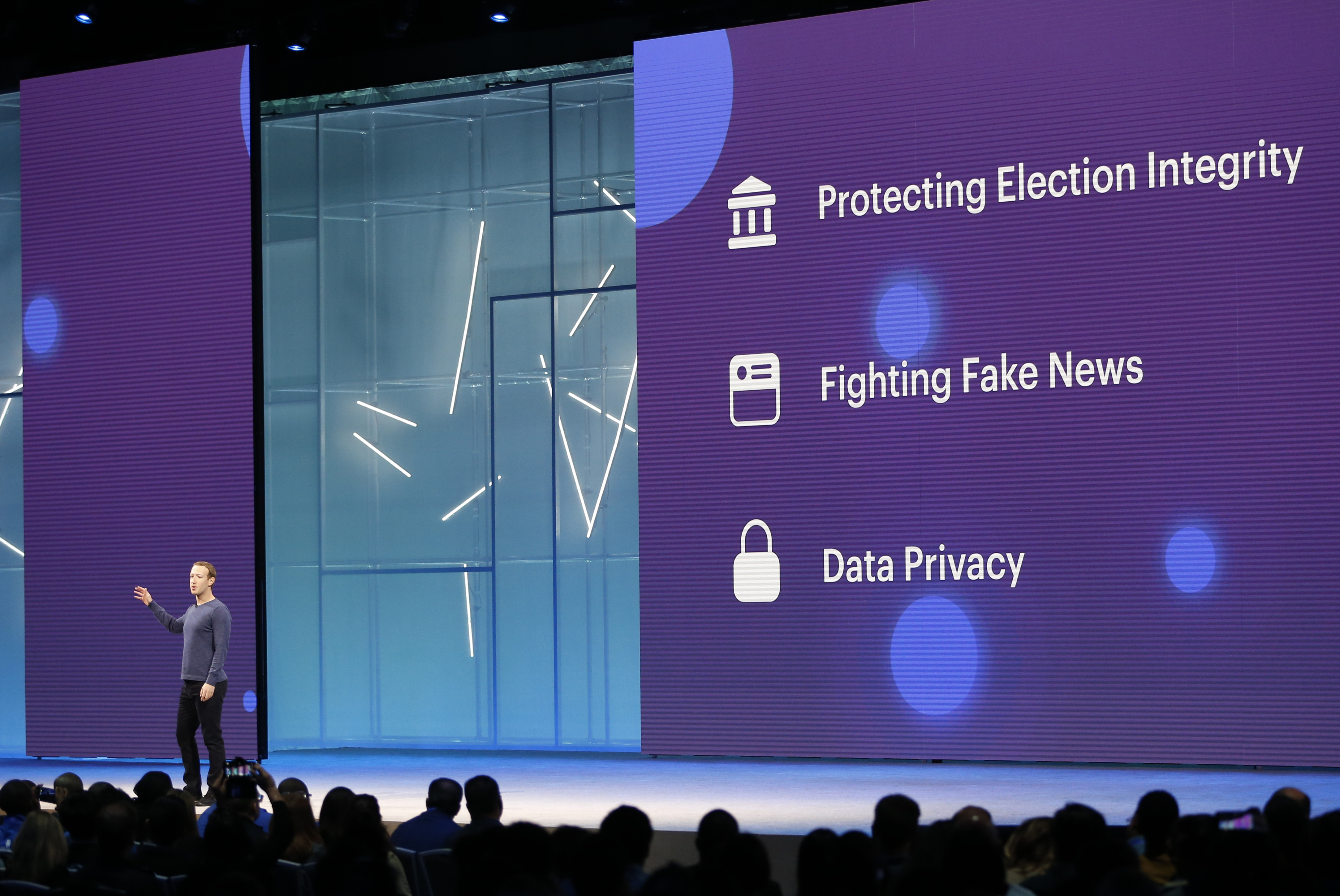 CEO Facebook - Mark Zuckerberg thuyết trình trong Hội nghị F8 diễn ra ở San Jose, California, Mỹ vào 1/5/2018. (Ảnh: REUTERS).