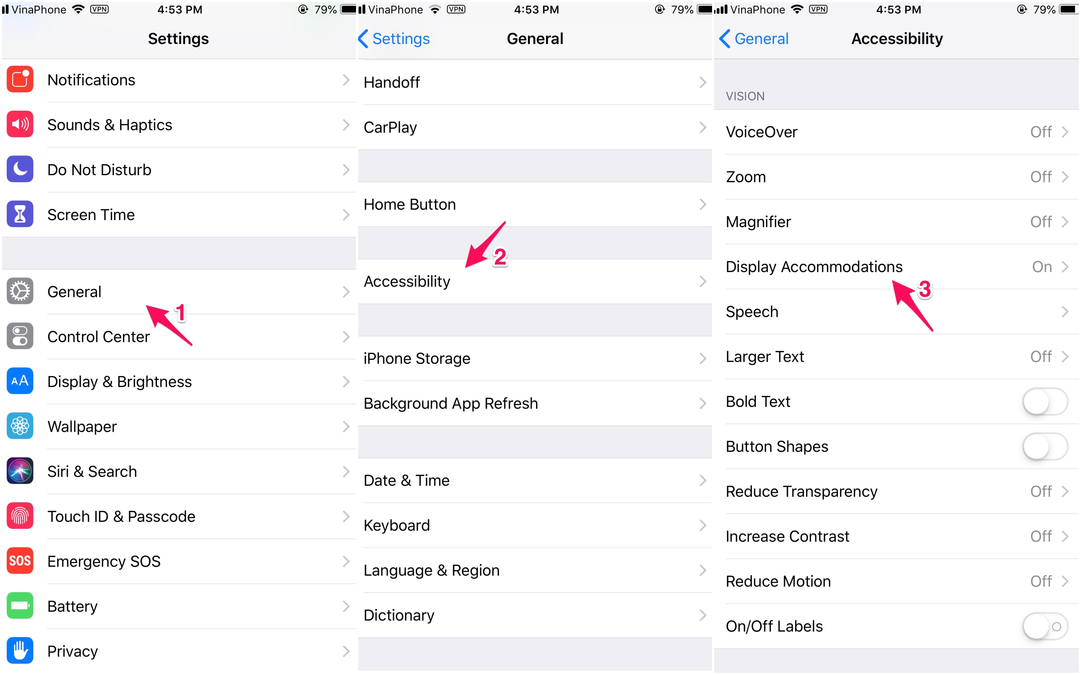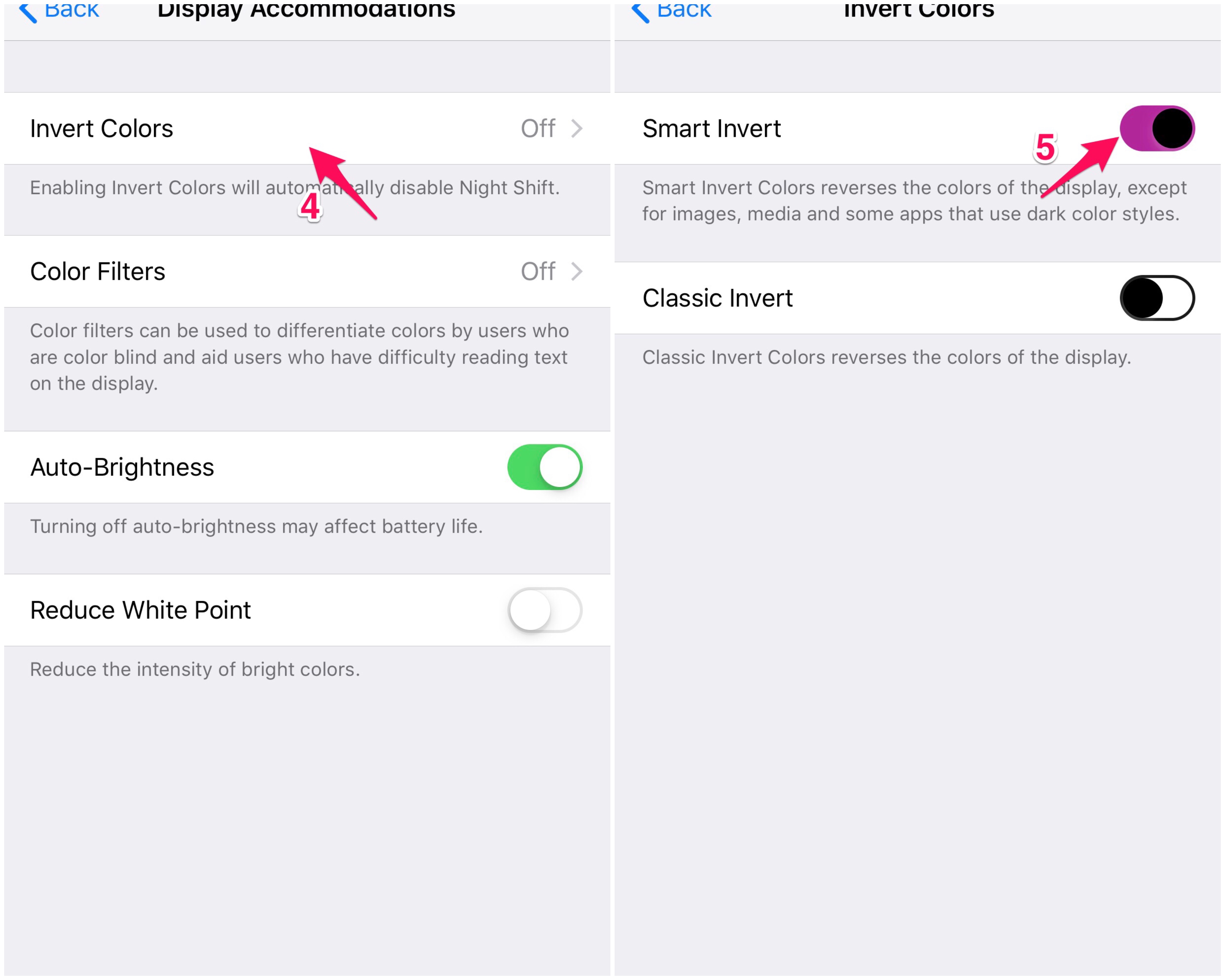 Cũng như Android, người dùng iPhone vẫn chưa thể kích hoạt Dark mode ở giao diện chính của Facebook. Tuy nhiên, bạn có thể áp dụng mẹo nhỏ sau: Cài đặt -> Cài đặt chung -> Trợ năng -> Thích nghi màn hình -> Đảo ngược màu -> Bật (hoặc Cài đặt -> Cài đặt chung -> Trợ năng -> Đảo ngược màu -> Bật cho những bản iOS cũ).