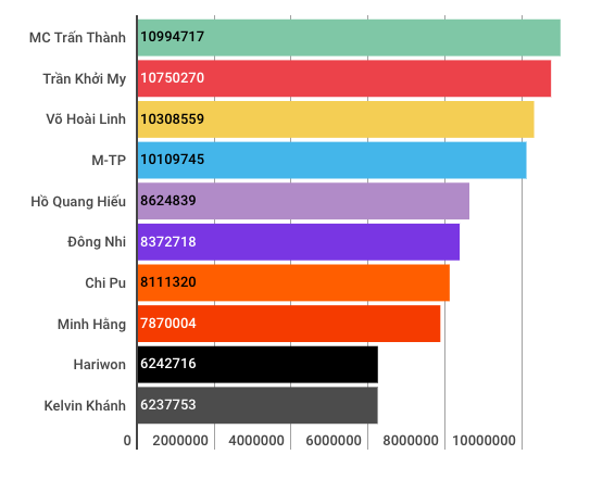 Với con số ấn tượng nói trên, nhiều người có thể cho rằng Sơn Tùng chính là người có sức hấp dẫn lớn nhất trong làng giải trí Việt Nam trên Facebook. Thế nhưng thực tế thì số lượng người nhấn like Sơn Tùng vẫn còn xếp sau danh hài Hoài Linh (10.308.559), ca sỹ Khởi My (10.750.270) và MC Trấn Thành (10.994.717).