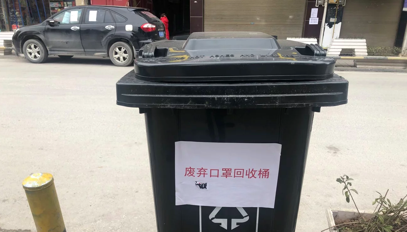 Một thùng rác để đựng khẩu trang đã qua sử dụng. (Ảnh: SCMP)