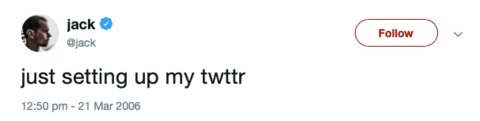 Vào ngày 21 tháng 3 năm 2006, Dorsey đăng dòng tweet đầu tiên lên Twitter.