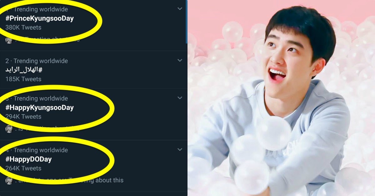 Chả là vào ngày sinh thần 12/1 (hôm nay) của D.O, cộng đồng fandom của EXO - EXO-L đã tặng quà sinh nhật vô cùng đặc biệt cho thần tượng của mình là cùng nhau đưa hashtag #HappyKyungsooDay (Chúc mừng sinh nhật Kyungsoo) lên top trending thế giới của mạng xã hội Twitter.
