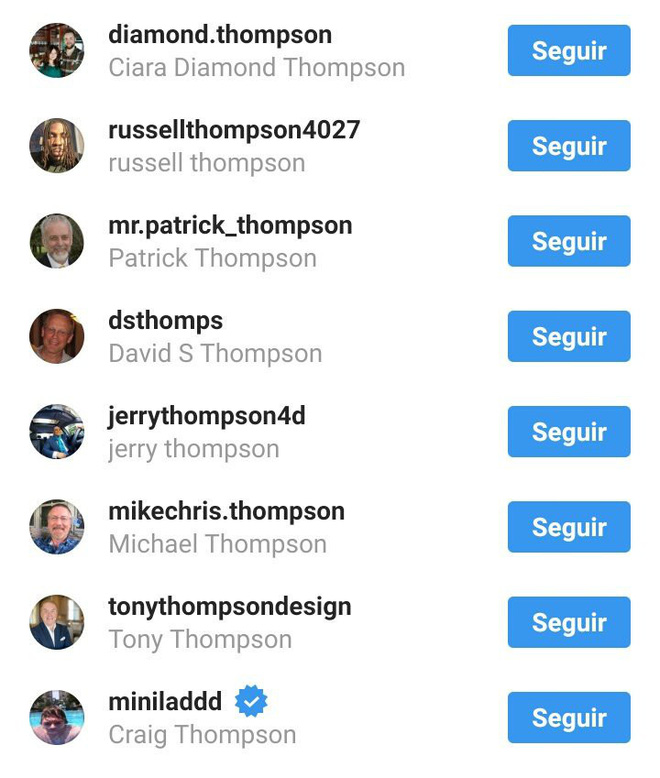 May mắn thay, sau khi đã follow đủ 419 anh chàng Paul William thì lisajames419419 đã chuyển sang những anh chàng có tên là Thompson. Có lẽ tài khoản bí ẩn này lại tiếp tục thực thi sứ mệnh của mình nữa chăng?