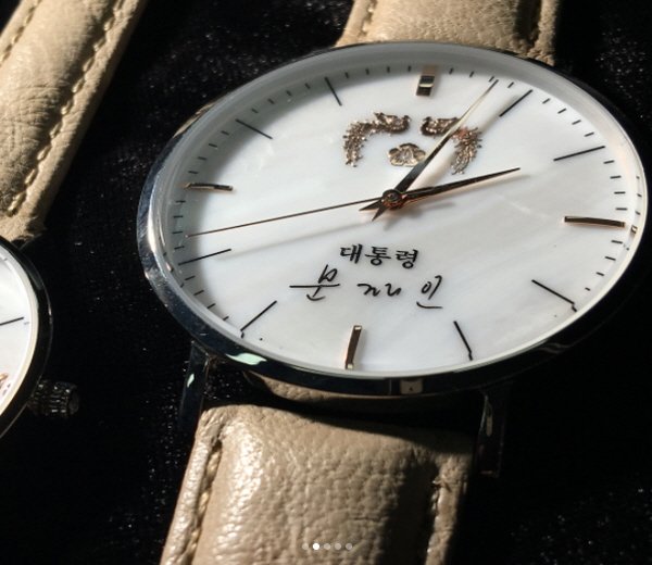 Tuy nhiên, ý nghĩa đặc biệt của nó lại từng khiến chiếc đồng hồ gây sốt khi được giới thiệu lần đầu tiên vào tháng 8 năm ngoái. Quan sát cho thấy chiếc đồng hồ này được trang trí bằng biểu tượng phượng hoàng trên mặt tròn. Bên dưới có chữ ký của Tổng thống Moon Jae In cùng thông điệp nổi tinegs của ông “Đặt người dân lên trên hết”.