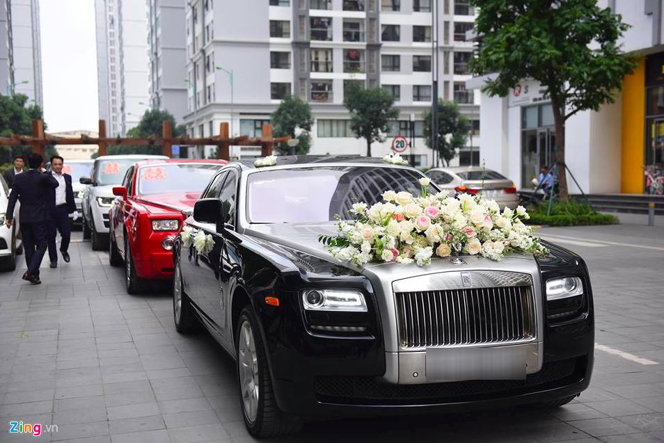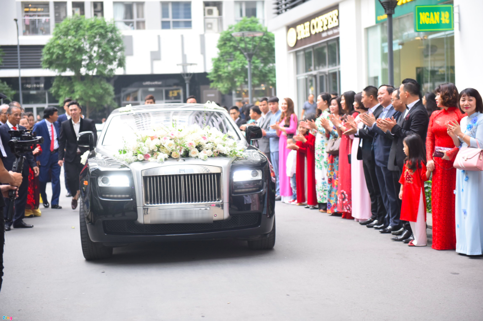 Tâm điểm trong lễ cưới lần này là chiếc Rolls Royce Phantom cực kì sang trọng. Nhiều nguồn tin cho biết chiếc xe này có giá trên dưới 30 tỷ đồng. (Ảnh: Zing)