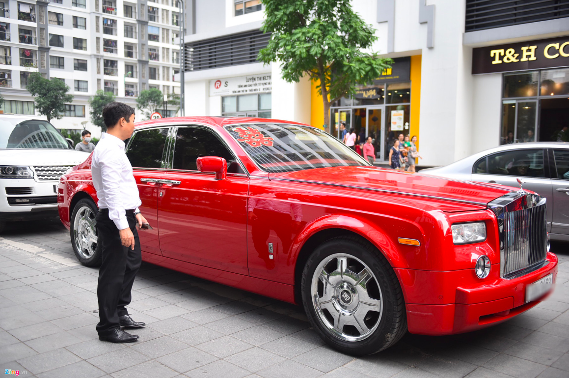 Cũng trong lễ vu quy, người ta còn nhìn thấy một chiếc Rolls Royce Phantom khác với ngoại hình màu đỏ. Đây là chiếc xe đã từng xuất hiện trong lễ ăn hỏi trước đó. (Ảnh: Zing)