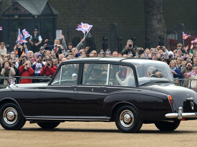 Chiếc Rolls Royce Royal Phantom IV (dùng động cơ 5,7L Straight 8) đậu ở trung tâm London, Anh vào này 21 tháng 3 năm 2011. Chiếc xe này sẽ được Thân vương xứ Wales và nữ công tước xứ Cornwall sử dụng vào lễ cưới của con trai mình, Hoàng tử William cùng Kate Middleton vào ngày 29 tháng 4 năm 2011.