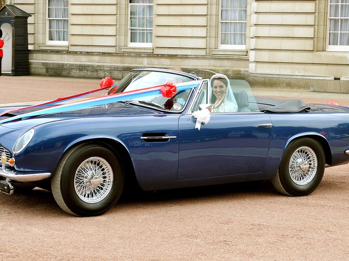 Hoàng tử William và Catherine, Nữ Công tước xứ Cambridge rời điện Buckingham trên một chiếc Aston Martin vào ngày 29 tháng 4 năm 2011.