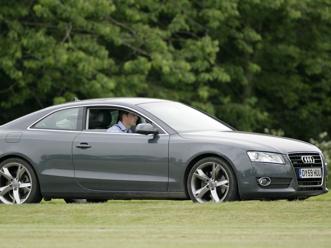 Hoàng tử William lái một chiếc Audi A5 vào câu lạc bộ polo Cirencester Park trước khi chơi cho đội Umbogo vào ngày 6 tháng 6 năm 2010 tại Cirencester, Anh.