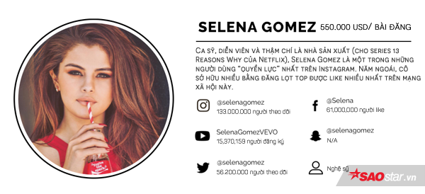 Tin hay không tùy bạn nhưng mạng xã hội có thể là một nguồn thu nhập không nhỏ đối với những người nổi tiếng có sức ảnh hưởng. Những con số dưới đây sẽ phần nào khẳng định điều này.