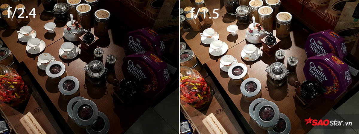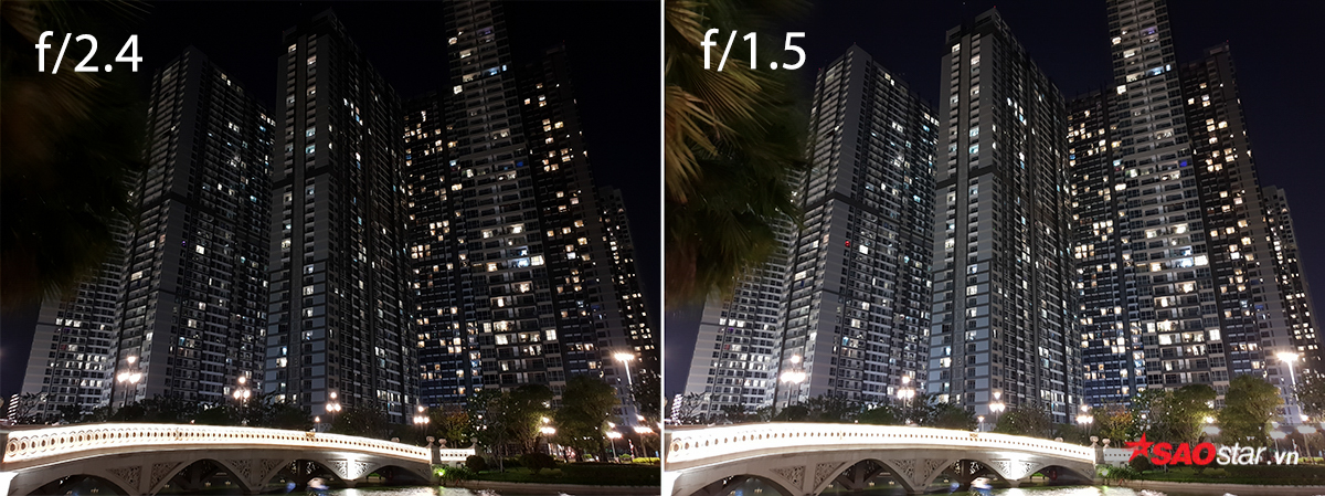 Galaxy S9/S9+ có khả năng thay đổi khẩu độ camera. Bên trái là khi khép khẩu thành f/2.4 và bên phải là khi mở khẩu tối đa f/1.5